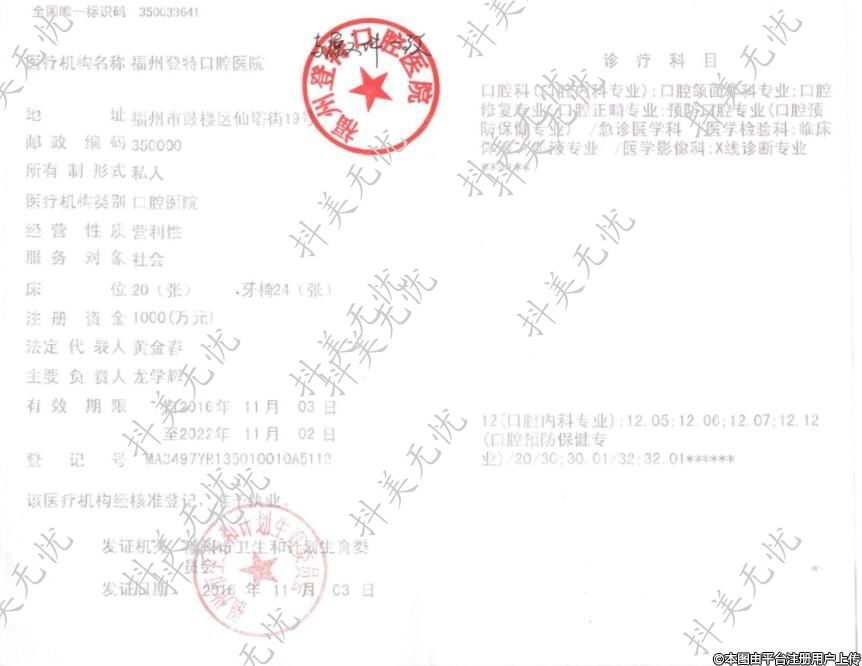 醫(yī)療機(jī)構(gòu)名稱:福州登特口腔醫(yī)院