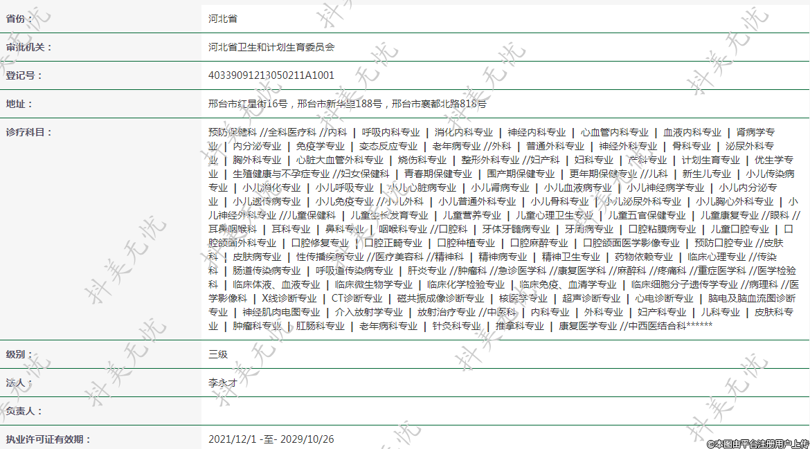 執(zhí)業(yè)許可證有效期:2021/12/1 -至- 2029/10/26