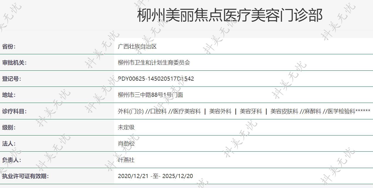 機(jī)構(gòu)名稱:柳州美麗焦點(diǎn)醫(yī)療美容門(mén)診部