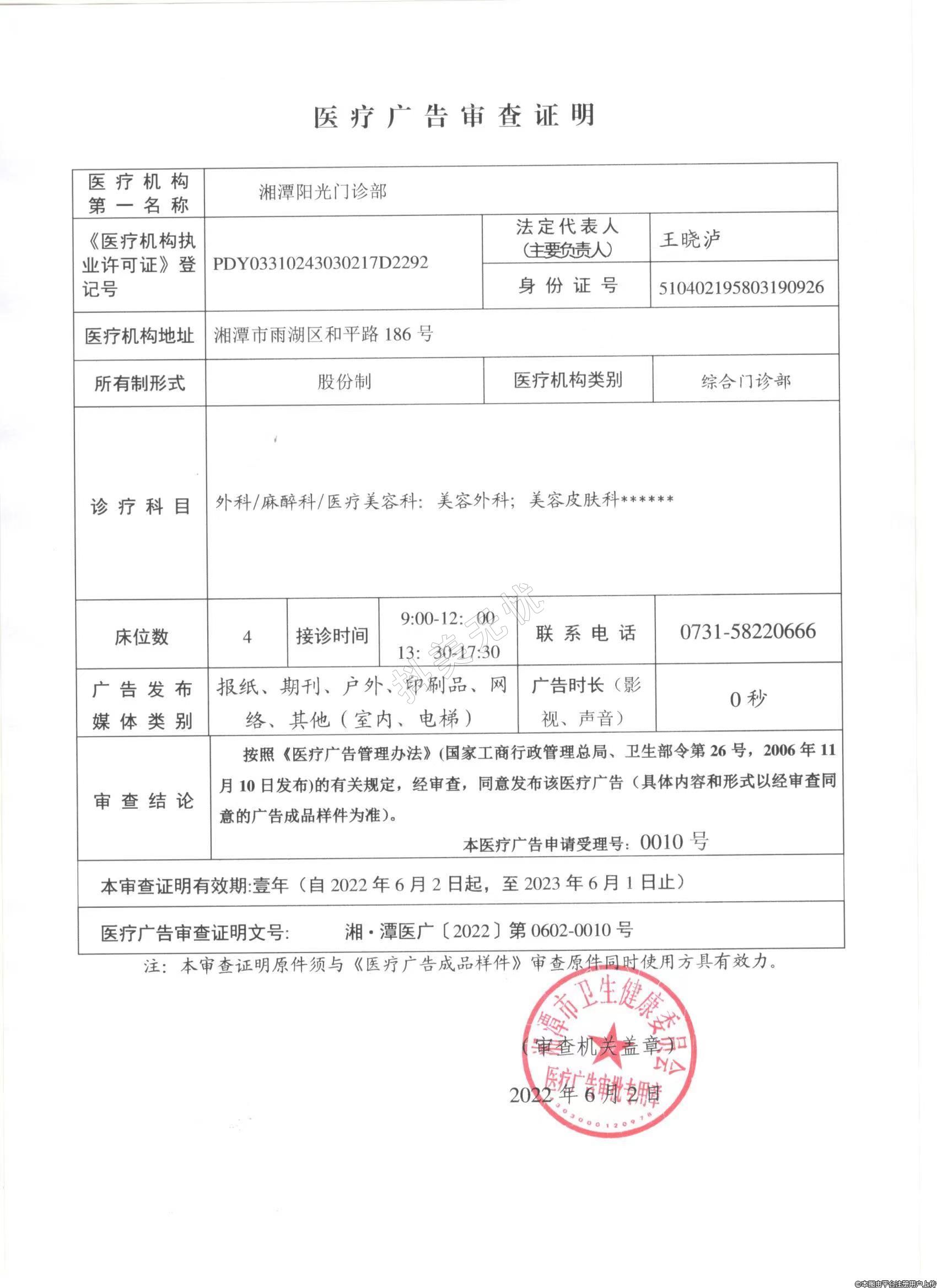 醫(yī)療機(jī)構(gòu)名稱:湘潭陽(yáng)光門(mén)診部