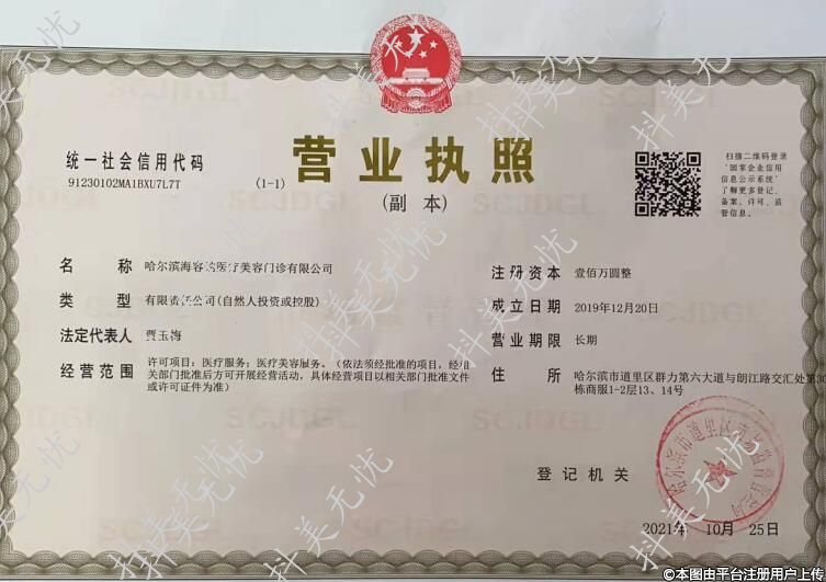 名稱:哈爾濱海容納醫(yī)療美容門診部