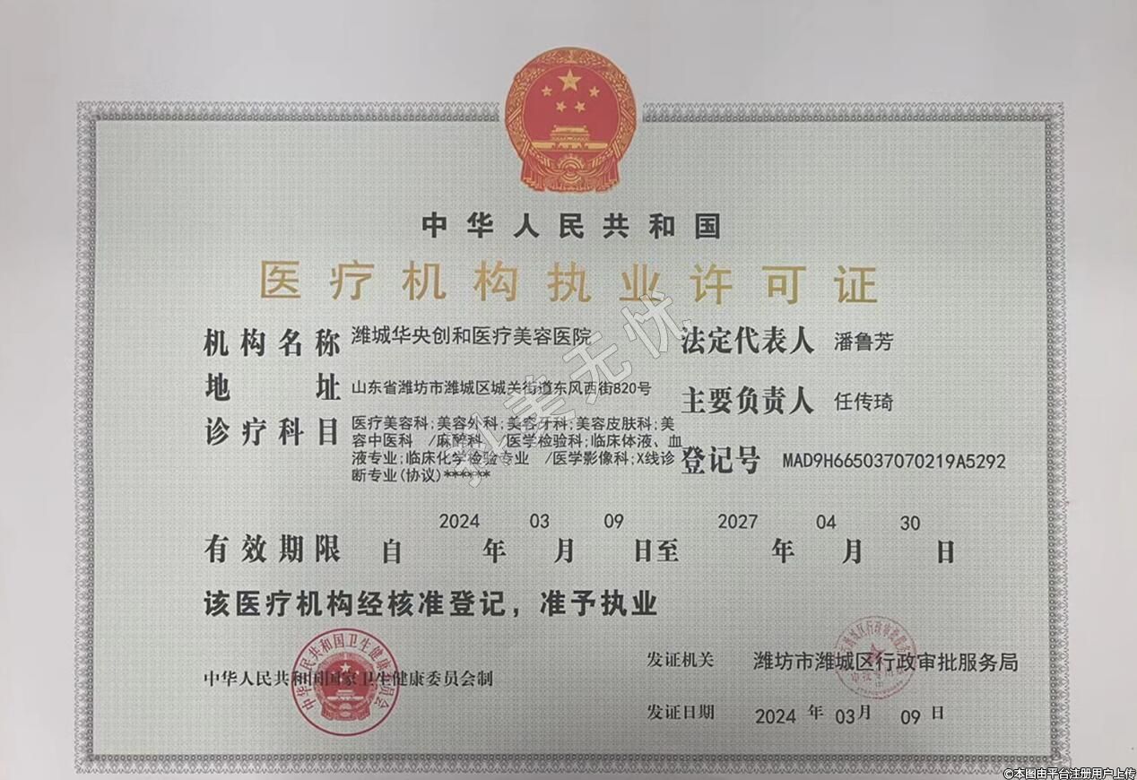 機構(gòu)名稱:濰城華央創(chuàng)和醫(yī)療美容醫(yī)院