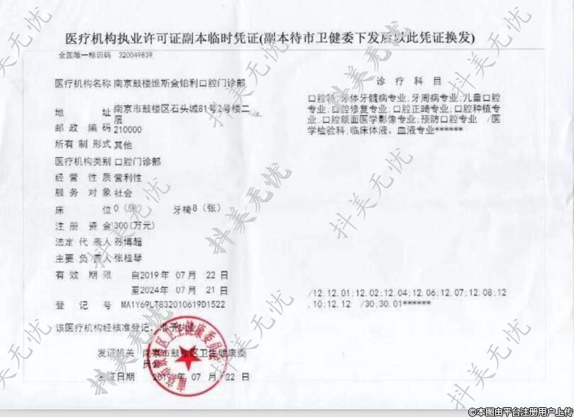 醫(yī)療機構名稱:南京鼓樓維斯金鉑利口腔門診部
