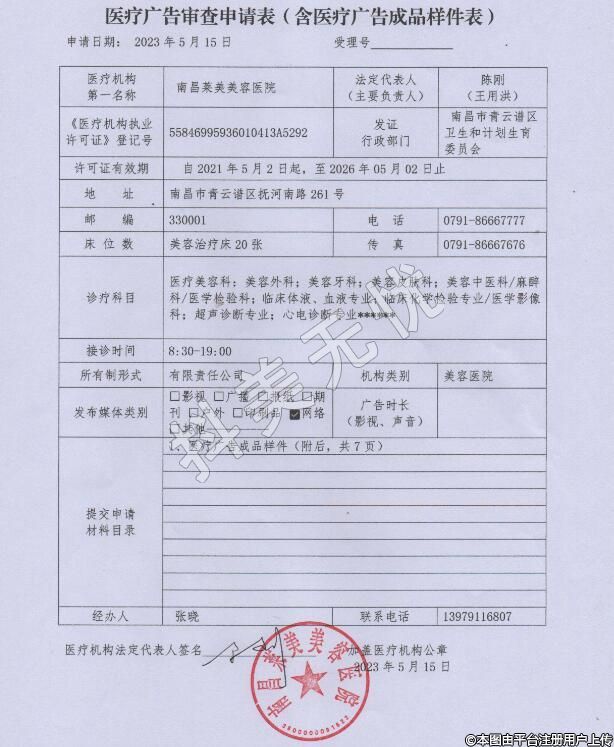 診療科目:醫(yī)療美容科|美容外科|美容牙科|美容皮膚科|美容中醫(yī)科/麻醉科/醫(yī)學(xué)檢驗(yàn)科|臨床體液、血液專業(yè)|臨床化學(xué)檢驗(yàn)專業(yè)/醫(yī)學(xué)影像科|超聲診斷專業(yè)|心電診斷專業(yè)******