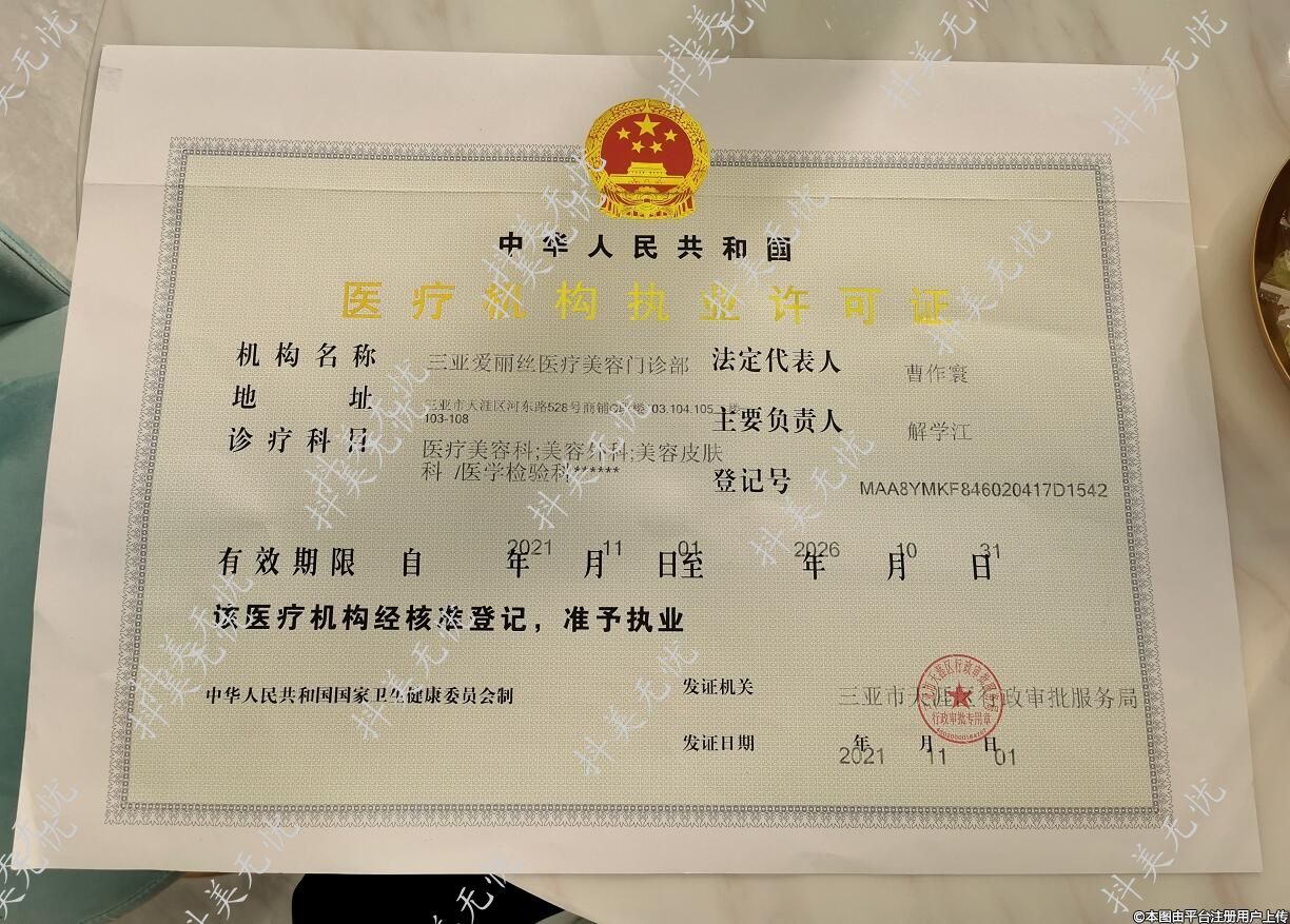 機構名稱:三亞愛麗絲醫(yī)療美容門診部