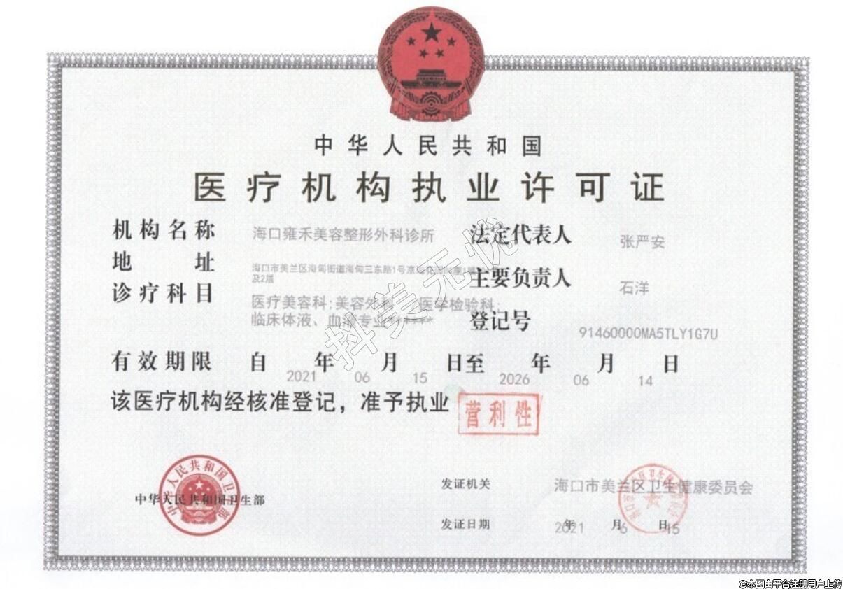 發(fā)證機(jī)關(guān):海口市美蘭區(qū)衛(wèi)生健康委員會