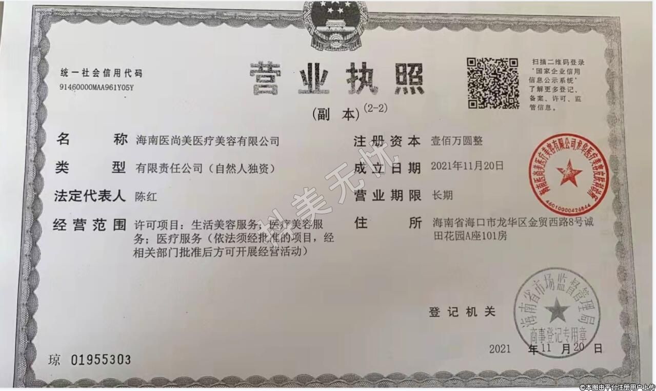 海南醫(yī)尚美醫(yī)療美容創(chuàng)建于2021年,統(tǒng)一社會信用代碼:91460000MAA961Y05Y,坐落于??谑旋埲A區(qū)金貿(mào)西路8號誠田花園A座101房。