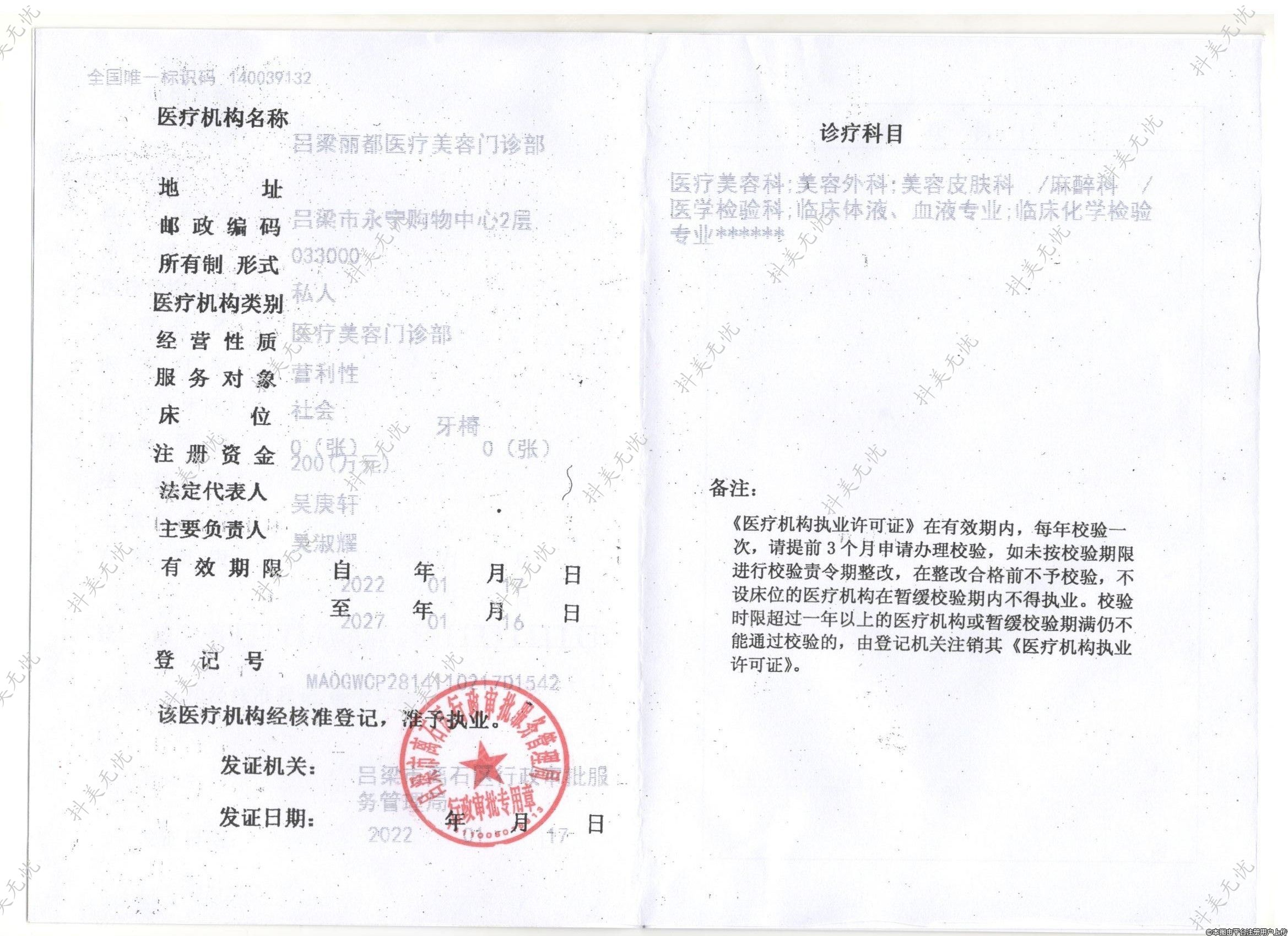 醫(yī)療機構(gòu)名稱:呂梁麗都醫(yī)療美容門診部
