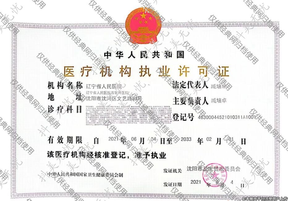 發(fā)證機(jī)關(guān):沈陽市衛(wèi)生健康委員會