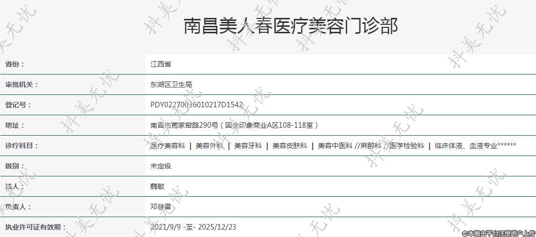 診療科目:醫(yī)療美容科|美容外科|美容牙科|美容皮膚科|美容中醫(yī)科/麻醉科/醫(yī)學(xué)檢驗(yàn)科|臨床體液、血液專業(yè)******