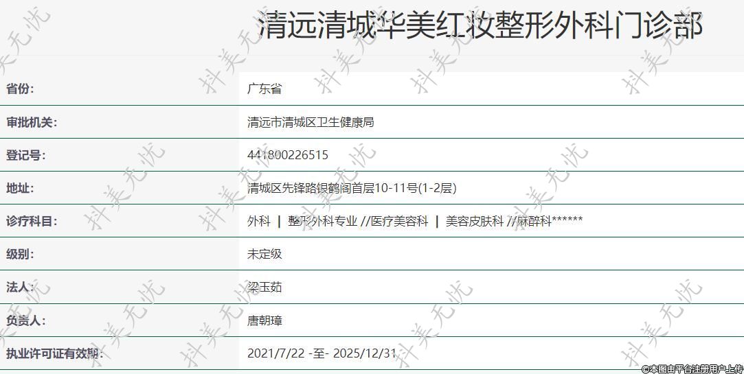 清遠(yuǎn)清城華美紅妝整形外科門診部