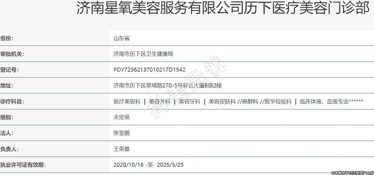 濟南星氧美容服務有限公司歷下醫(yī)療美容門診部