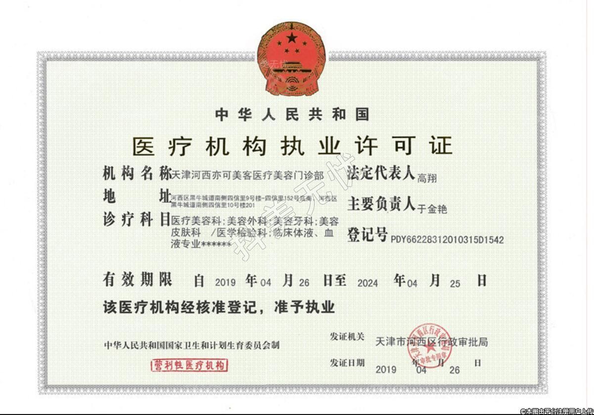 機(jī)構(gòu)名稱:天津河西亦可美客醫(yī)療美容門診部