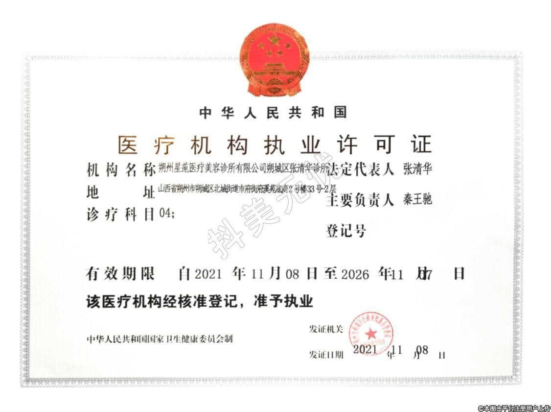 機構(gòu)名稱:朔州星苑醫(yī)療美容診所有限公司朔城區(qū)張清華診所