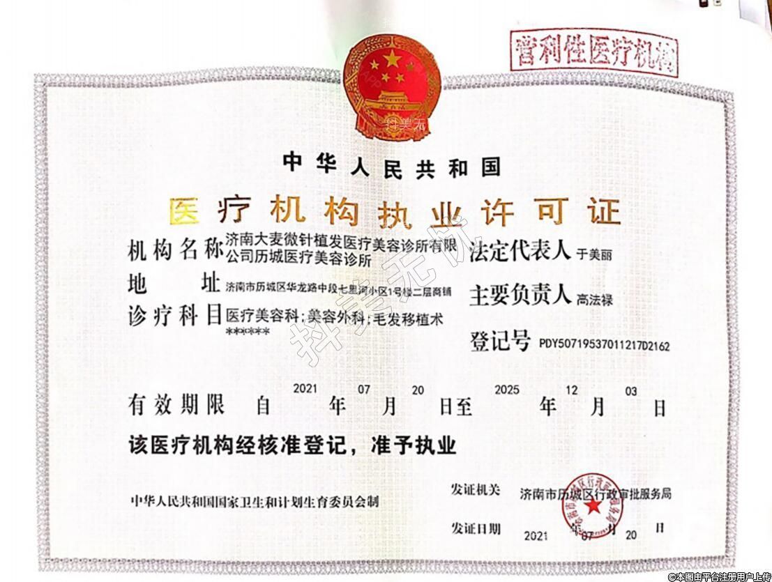 機(jī)構(gòu)名稱:濟(jì)南大麥微針植發(fā)醫(yī)療美容診所有限公司歷城醫(yī)療美容診所