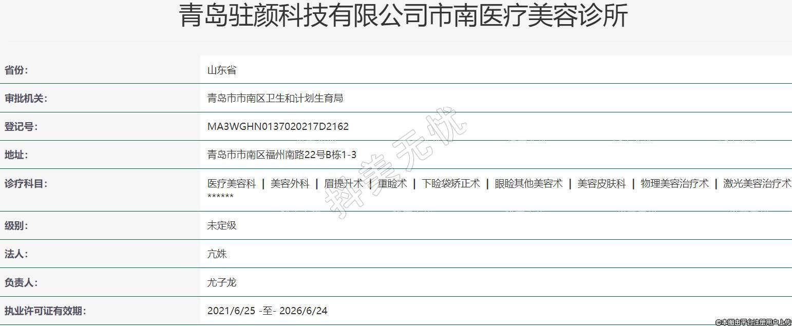 青島駐顏科技有限公司市南醫(yī)療美容診所