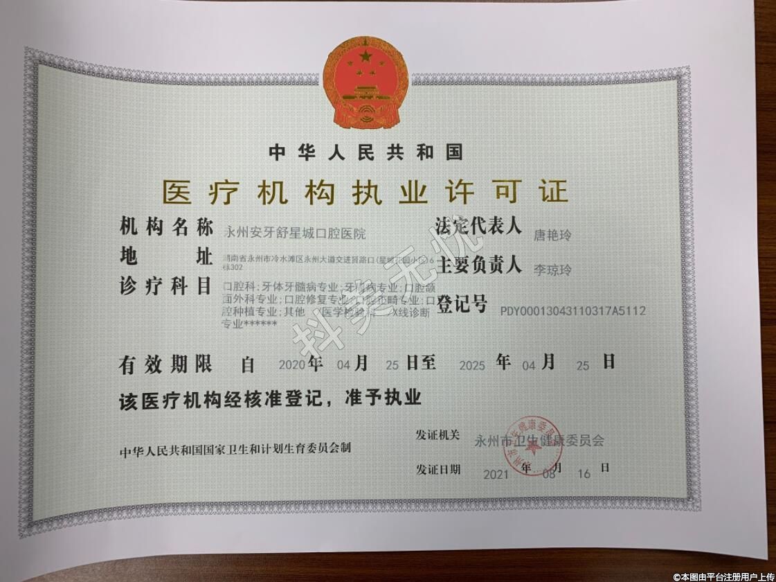 機構名稱:永州安牙舒星城口腔醫(yī)院