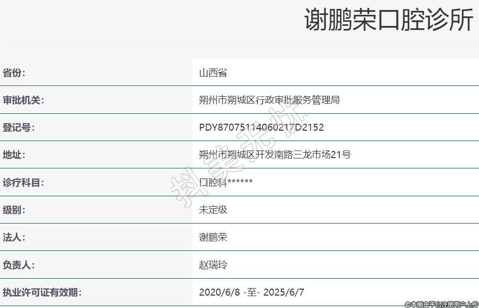 朔州市朔城區(qū)謝鵬榮口腔診所成立于2016年O1月15日,注冊地位于朔城區(qū)開發(fā)南路19號前排21號,法定代表人為謝鵬榮。經(jīng)營范圍包括口腔科(門診)