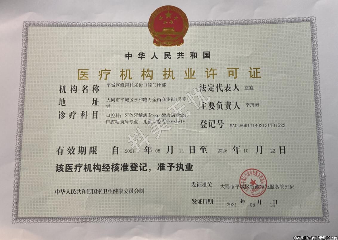 機構(gòu)名稱:平城區(qū)維恩佳樂齒口腔門診部