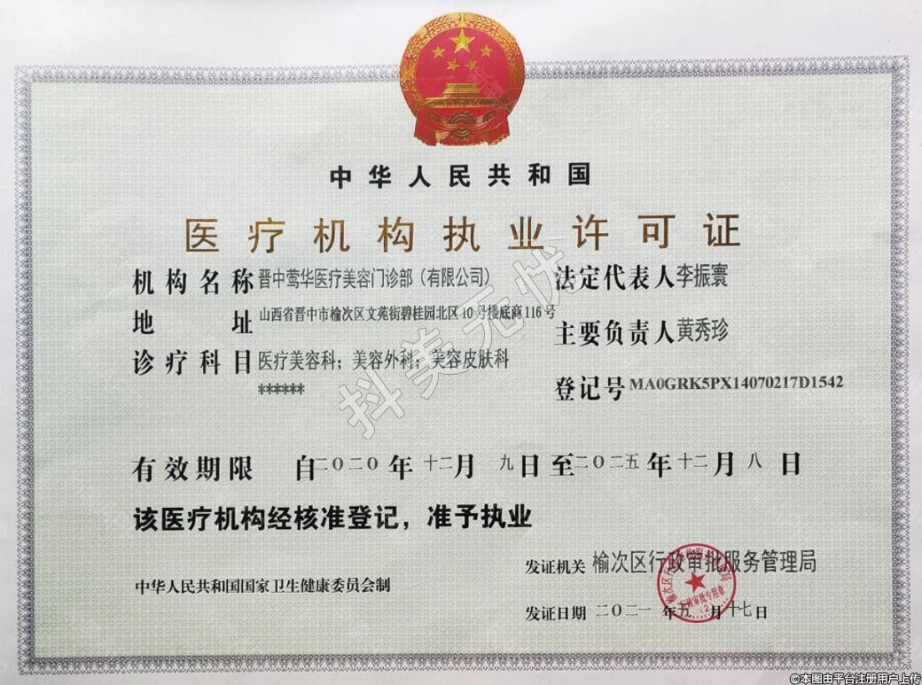機構(gòu)名稱:晉中鶯華醫(yī)療美容門診部(有限公司)