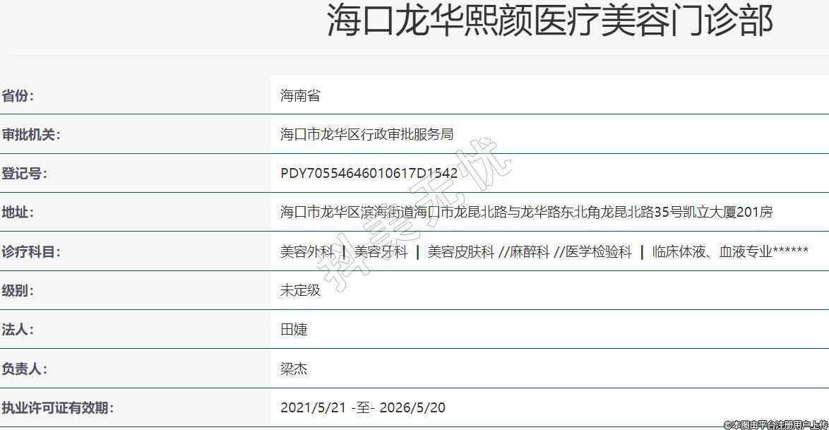 海南熙顏醫(yī)學(xué)美容2021-03-10成立,地址:??谑旋埲A區(qū)濱海街道海口市龍昆北路與龍華路東北角龍昆北路35號凱立大廈201房,診療科目:美容外科 | 美容牙科 | 美容皮膚科 //麻醉科 //醫(yī)學(xué)檢驗科 | 臨床體液、血液專業(yè)******