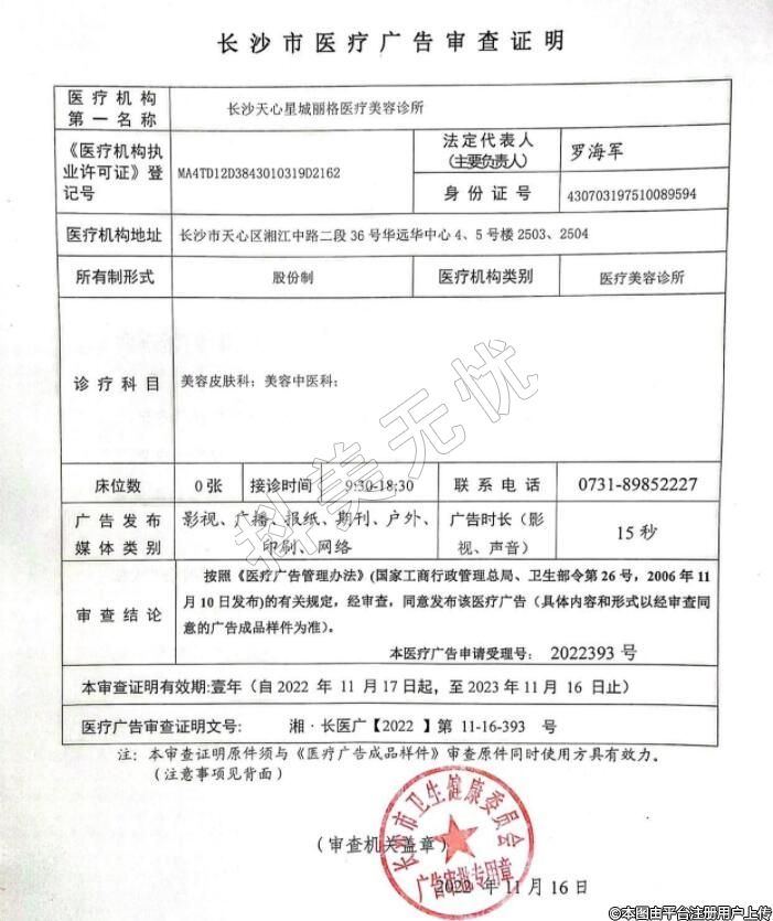 審批機關(guān):長沙市天心區(qū)衛(wèi)生健康局