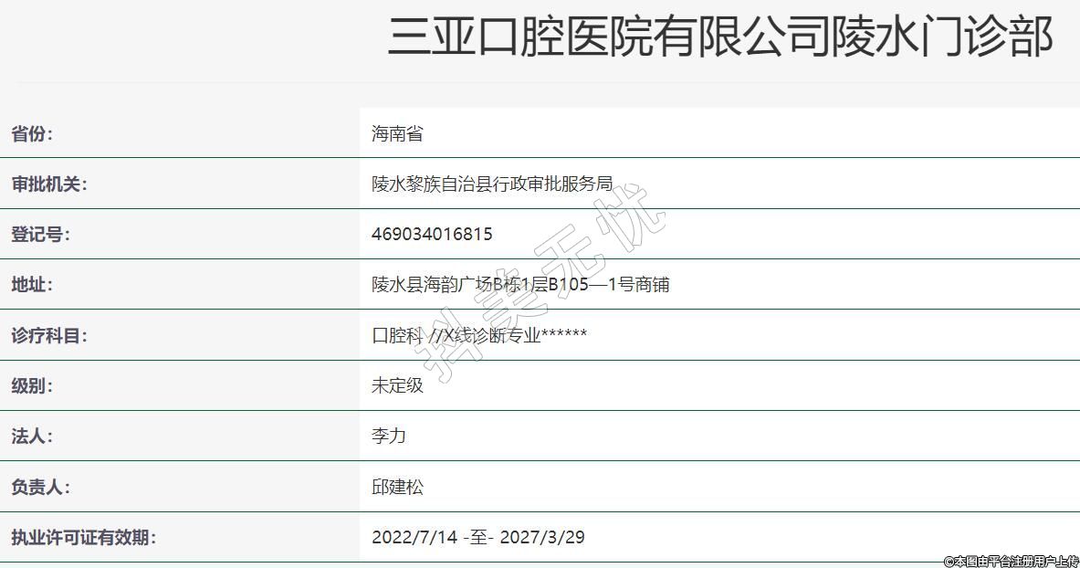 三亞口腔醫(yī)院有限公司陵水門診部