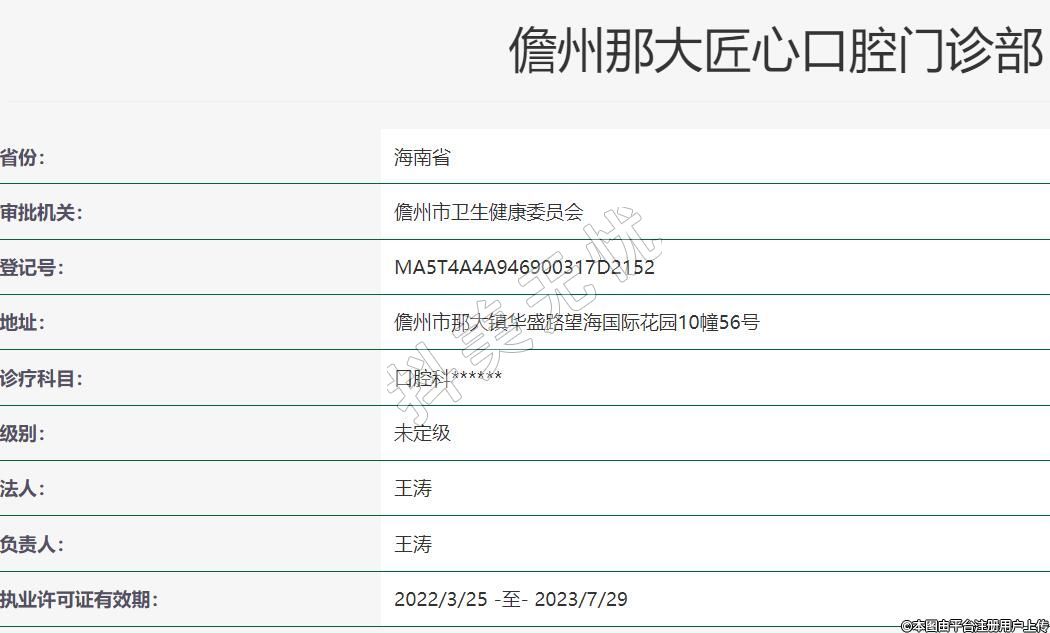 儋州那大匠心口腔門診部成立于2018年05月10日,注冊地位于儋州市那大鎮(zhèn)華盛路望海國際花園10幢56號,法定代表人為王濤。經(jīng)營范圍包括口腔科。