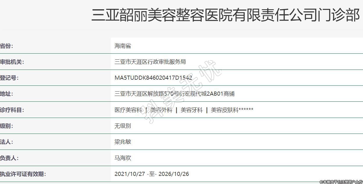 三亞韶麗美容整容醫(yī)院有限責任公司門診部
