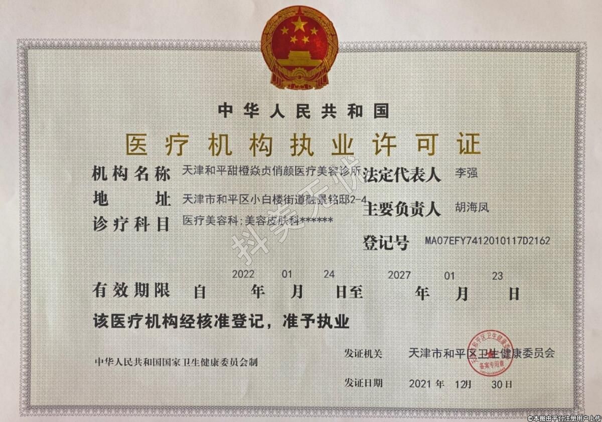 發(fā)證機關:天津市和平區(qū)衛(wèi)生健康委員會