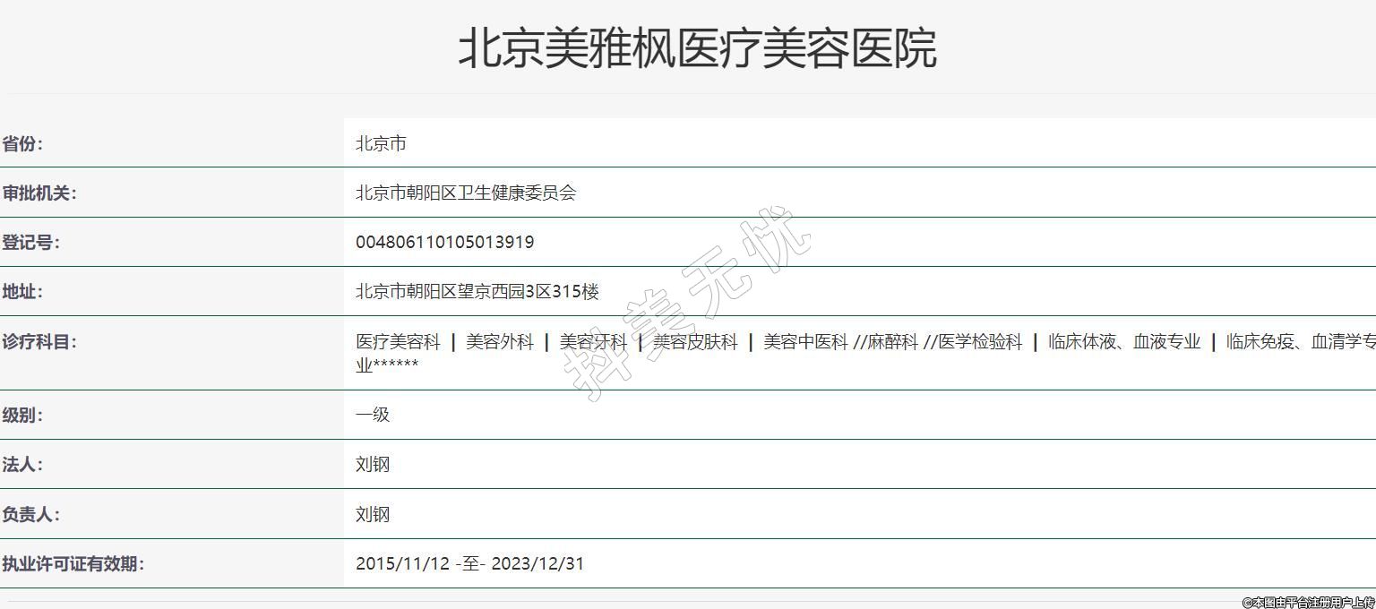 北京美雅楓醫(yī)療美容醫(yī)院于2004年經(jīng)國家衛(wèi)生部門批準,多年來我們始終堅持誠信經(jīng)營、品質服務的核心管理理念,為每位顧客量身定制個性化的美容治療方案。美是屬于每一個人的,美雅楓致力于創(chuàng)造美,幫助更多女性朋友實現(xiàn)人生價值。我們也將始終秉承誠信、品質的服務理念,讓每一位走進美雅楓的女性朋友,感受到溫暖,真切的服務。