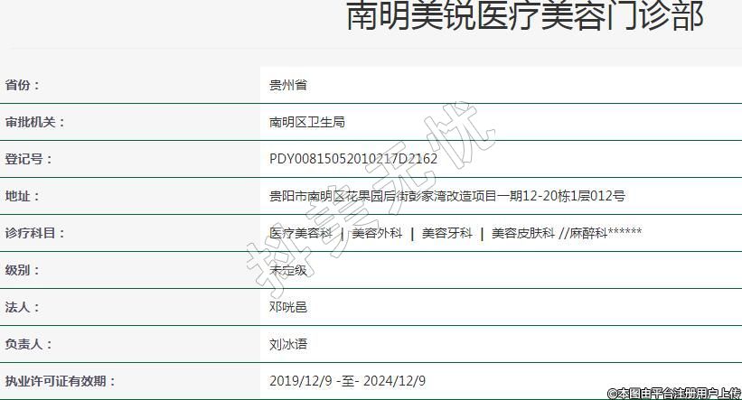 貴陽美銳醫(yī)療美容2019-04-04成立,地址:貴陽市南明區(qū)花果園后街彭家灣改造項(xiàng)目一期12-20棟1層012號,診療科目:醫(yī)療美容科 | 美容外科 | 美容牙科 | 美容皮膚科 //麻醉科******