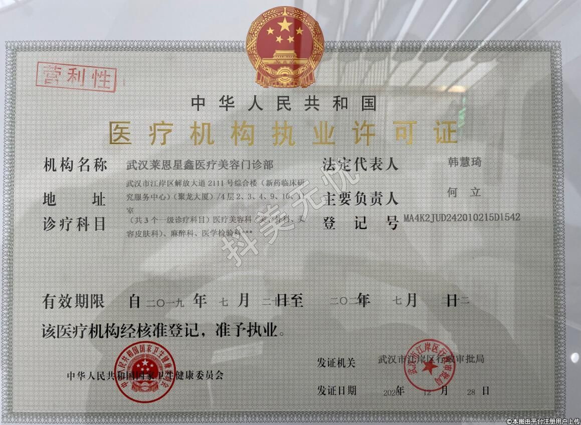 機(jī)構(gòu)名稱:武漢萊恩星鑫醫(yī)療美容門診部