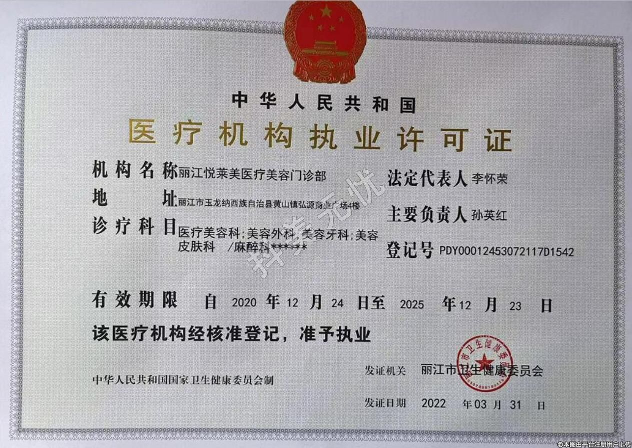 機(jī)構(gòu)名稱:麗江悅?cè)R美醫(yī)療美容門診部