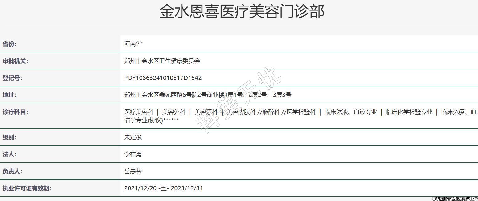 鄭州恩喜醫(yī)療美容有限公司成立于2015年03月30日,注冊地位于河南省鄭州市金水區(qū)鑫苑西路6號院2號商業(yè)樓1層1號、2層2號、3層3號。經(jīng)營范圍包括美容外科、美容皮膚科、美容口腔科、麻醉科、美容中醫(yī)科、美容服務(wù)、美容咨詢。