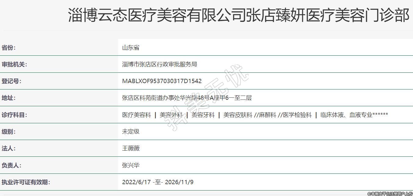 淄博云態(tài)醫(yī)療美容有限公司張店臻妍醫(yī)療美容門診部