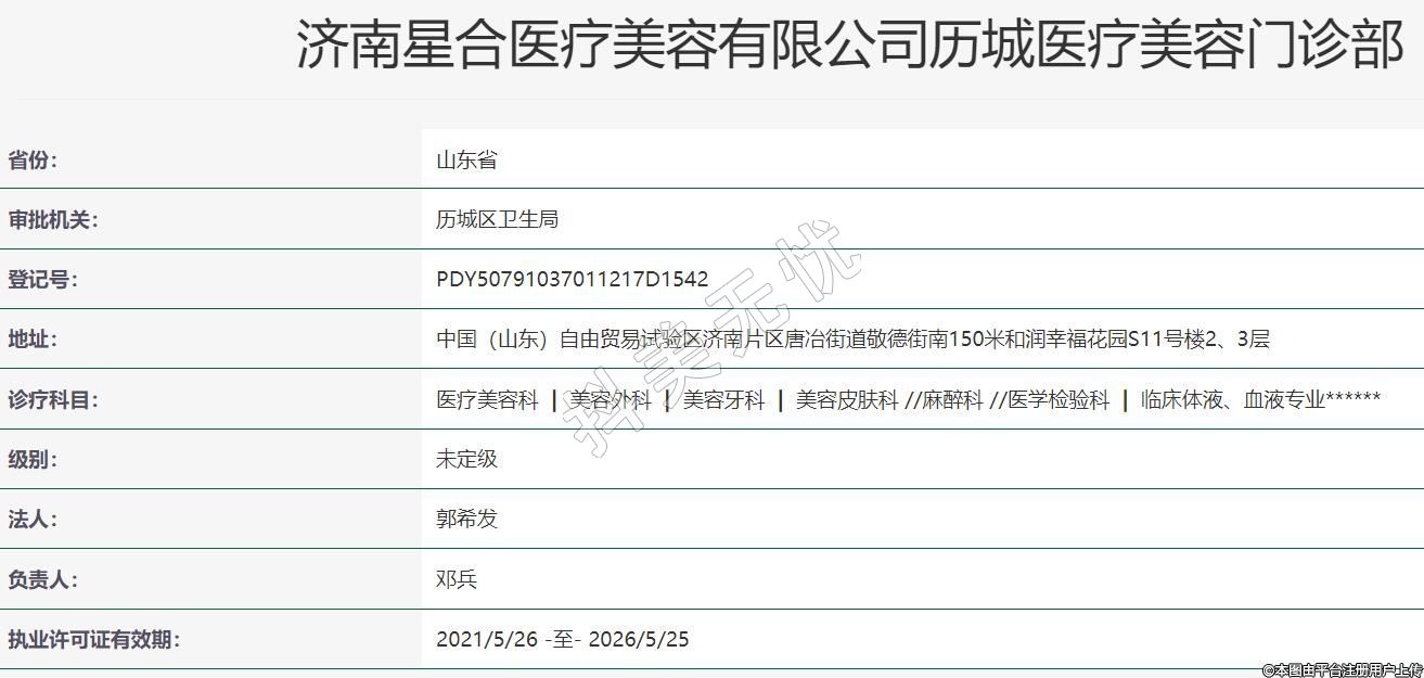 濟(jì)南星合醫(yī)療美容有限公司歷城醫(yī)療美容門診部