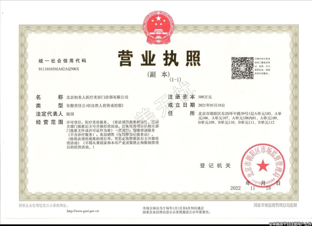 北京初美人醫(yī)療美容門診部有限公司,成立于2021-05-10,診療科目:醫(yī)療美容科 | 美容外科 | 美容牙科 | 美容皮膚科 //醫(yī)學檢驗科 | 臨床體液、血液專業(yè) | 臨床化學檢驗專業(yè) | 臨床免疫、血清學專業(yè)******