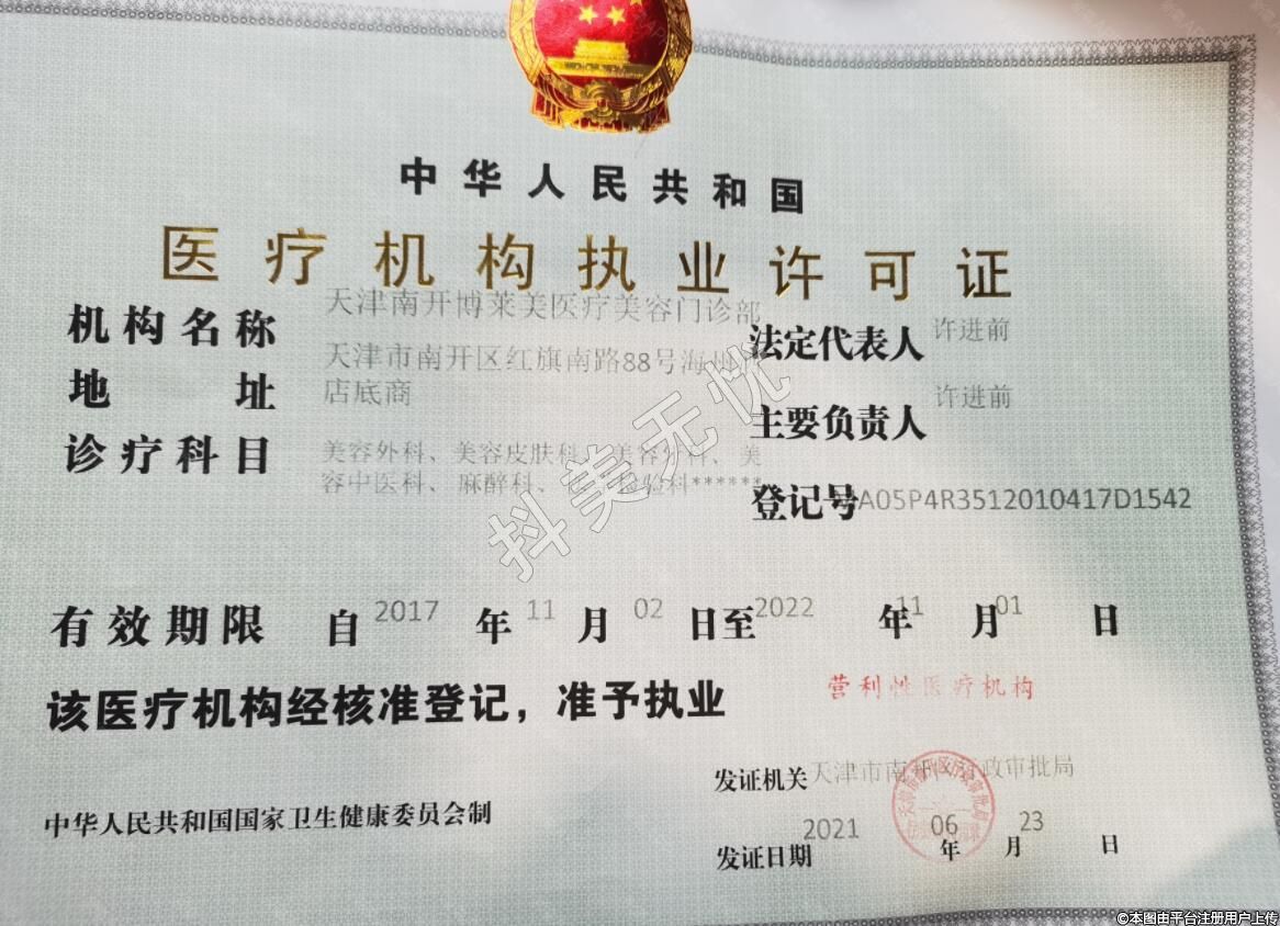天津博萊美醫(yī)療美容2017-03-24成立,地址:天津市南開區(qū)紅旗南路88號海州酒店底商,診療科目:美容外科,美容皮膚科、美容牙科、容中醫(yī)科、聯(lián)醉科、醫(yī)學(xué)檢驗(yàn)科******