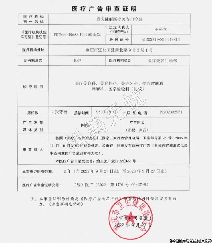 發(fā)證機關:重慶市江北區(qū)衛(wèi)生健康委員會