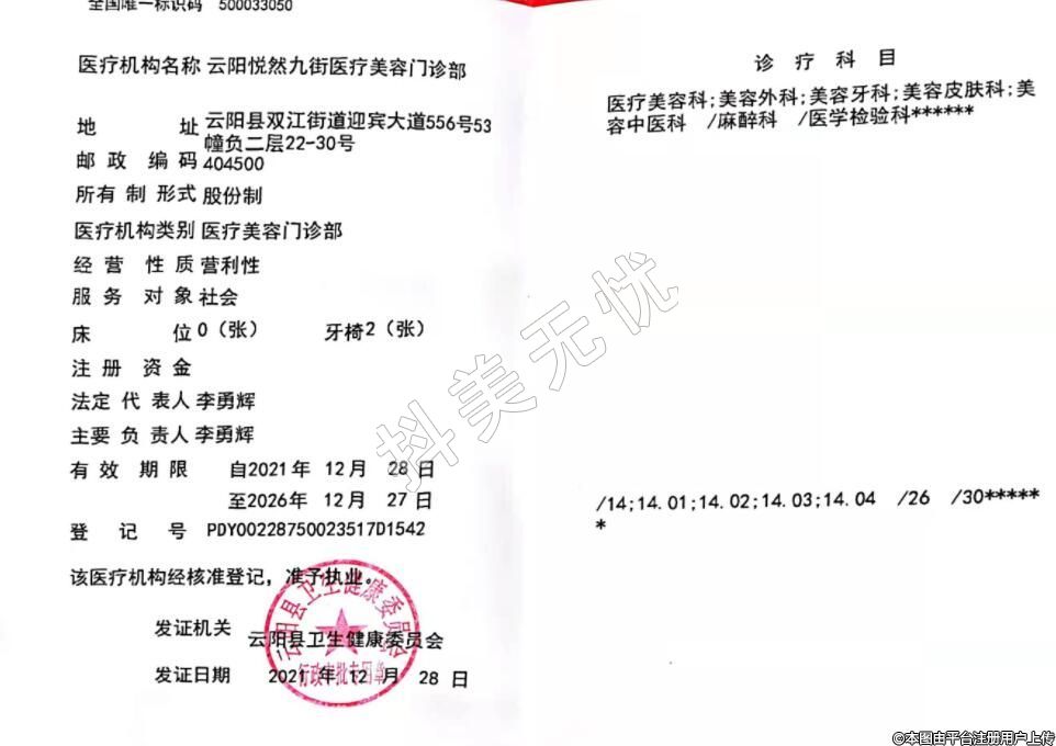 醫(yī)療機(jī)構(gòu)名稱:云陽悅?cè)痪沤轴t(yī)療美容門診部