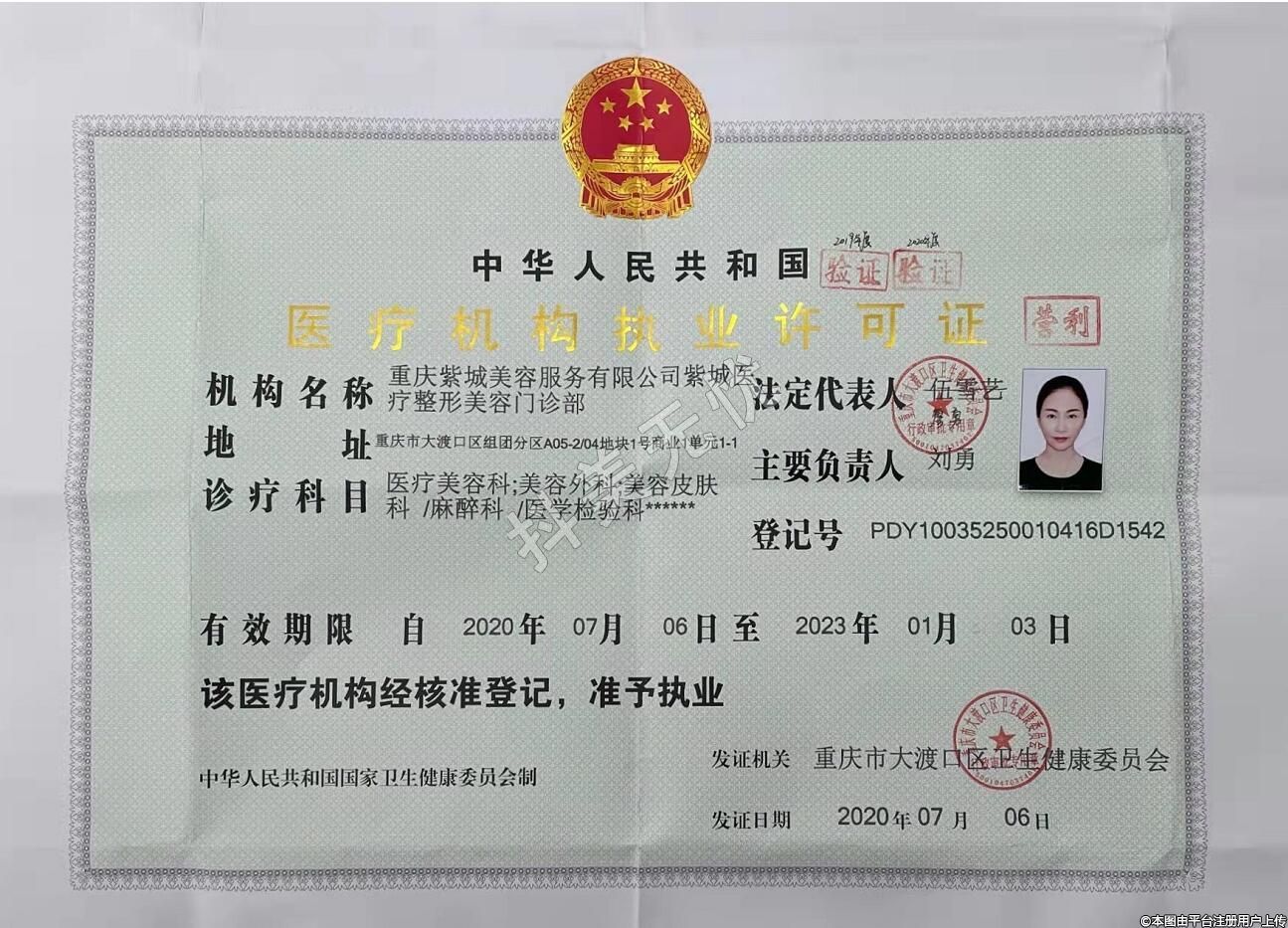 機(jī)構(gòu)名稱:重慶紫城美容服務(wù)有限公司紫城醫(yī)療整形美容門診部