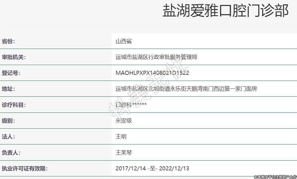 運(yùn)城愛雅口腔2017年08月09日成立,地址:運(yùn)城市鹽湖區(qū)北城街道永樂街天鵝灣南門西邊第一家門面房,診療科目:口腔科******