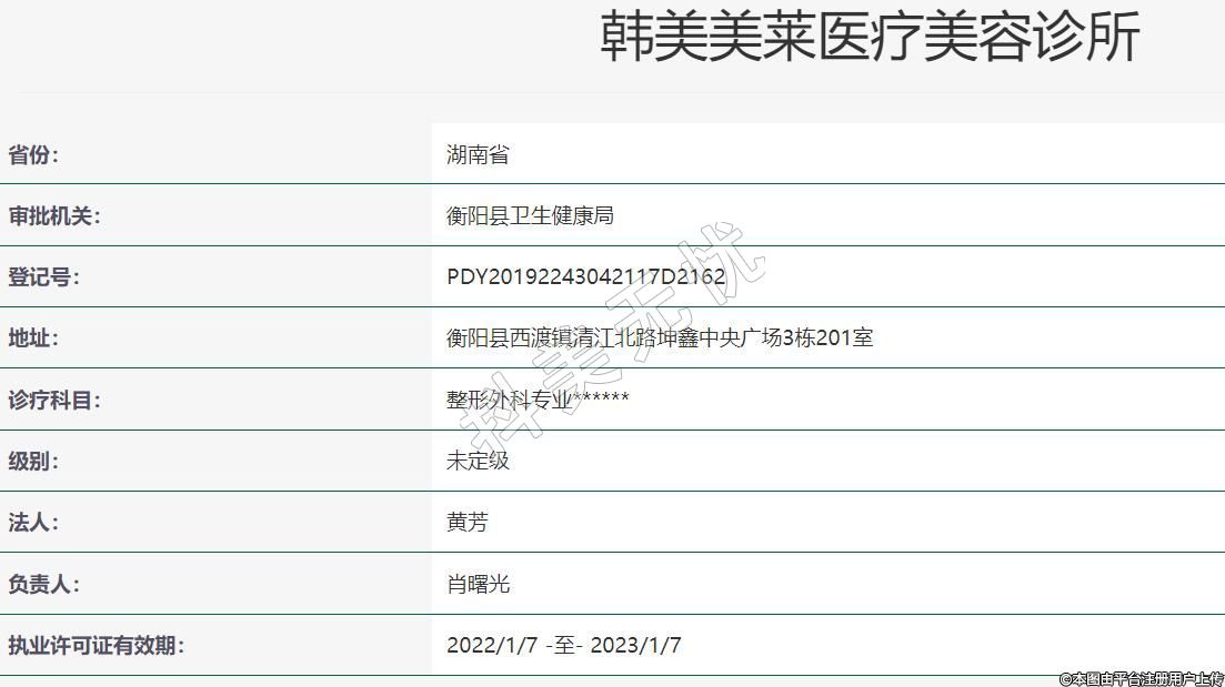 衡陽韓美美萊醫(yī)療美容2019年09月10日成立,地址:衡陽縣西渡鎮(zhèn)清江北路坤鑫中央廣場(chǎng)3棟201室,診療科目:整形外科專業(yè)******