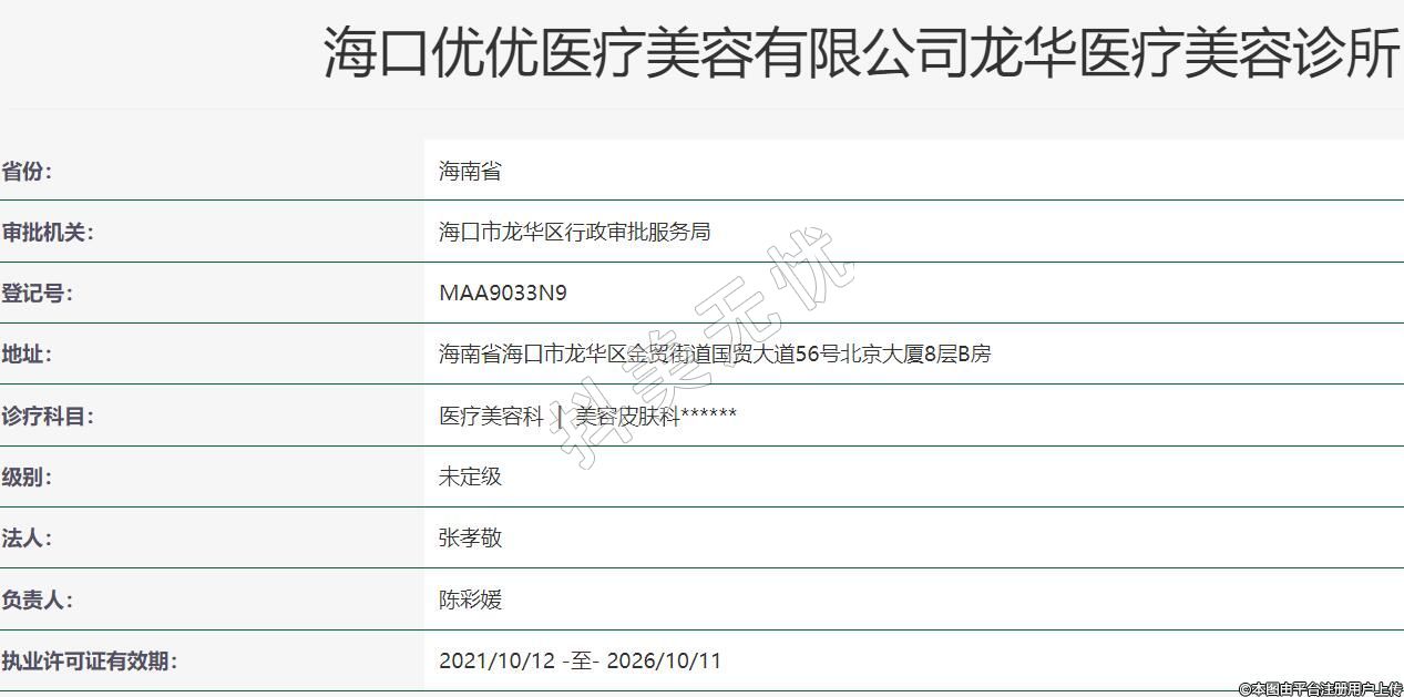 ??趦?yōu)優(yōu)醫(yī)療美容有限公司成立于2021年08月03日,注冊地位于海南省??谑旋埲A區(qū)國貿(mào)路56號北京大廈8樓B,法定代表人為張孝敬。經(jīng)營范圍包括許可項目:醫(yī)療美容服務;生活美容服務(依法須經(jīng)批準的項目,經(jīng)相關部門批準后方可開展經(jīng)營活動)