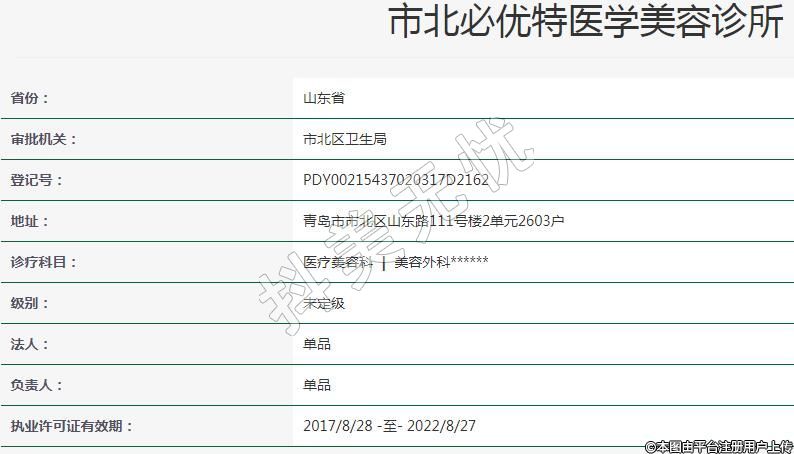 青島必優(yōu)特醫(yī)學美容2002年10月22日成立,地址:青島市市北區(qū)山東路111號樓2單元2603戶,診療科目:醫(yī)療美容科 | 美容外科******
