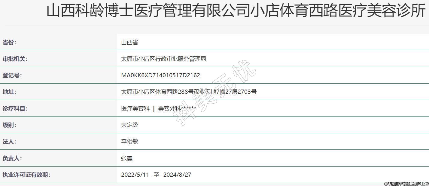 山西科齡博士醫(yī)療管理有限公司小店體育西路醫(yī)療美容診所