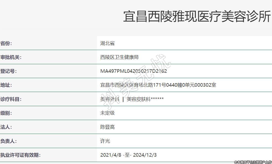 宜昌雅現(xiàn)醫(yī)療美容2019-01-22成立,地址:宜昌市西陵區(qū)體育場北路171號0440幢0單元000302室,診療科目:美容外科 | 美容皮膚科******