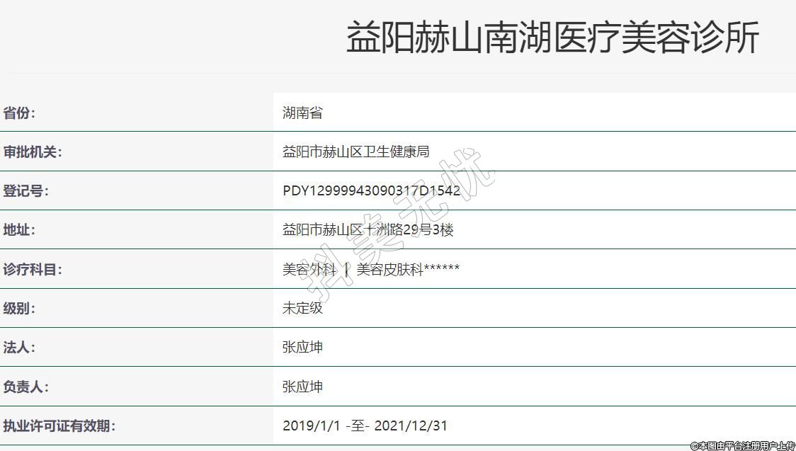 益陽赫山南湖醫(yī)療美容診所,成立于2017-12-06,位于益陽市赫山區(qū)十洲路29號三樓,診療科目:美容外科 | 美容皮膚科******
