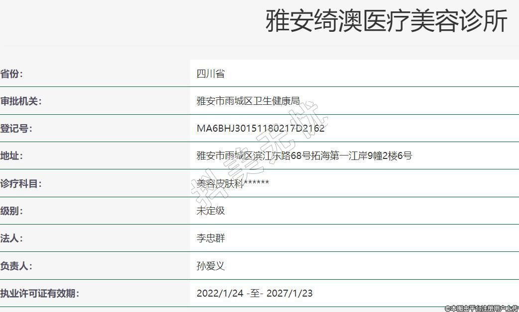 雅安綺澳醫(yī)療美容診所成立于2021年,統(tǒng)一社會信用代碼:91511802MA6BHJ301A,位于雅安市雨城區(qū)濱江東路68號拓海第一江岸9幢2樓6號,是雅安市一家專業(yè)的醫(yī)療美容機構,致力于將安全、有效、潮流的醫(yī)美技術和產(chǎn)品帶給眾多的愛美人士,誠意服務于國內(nèi)的美麗事業(yè),努力滿足每一位求美者私人定制式的專屬美麗需求。